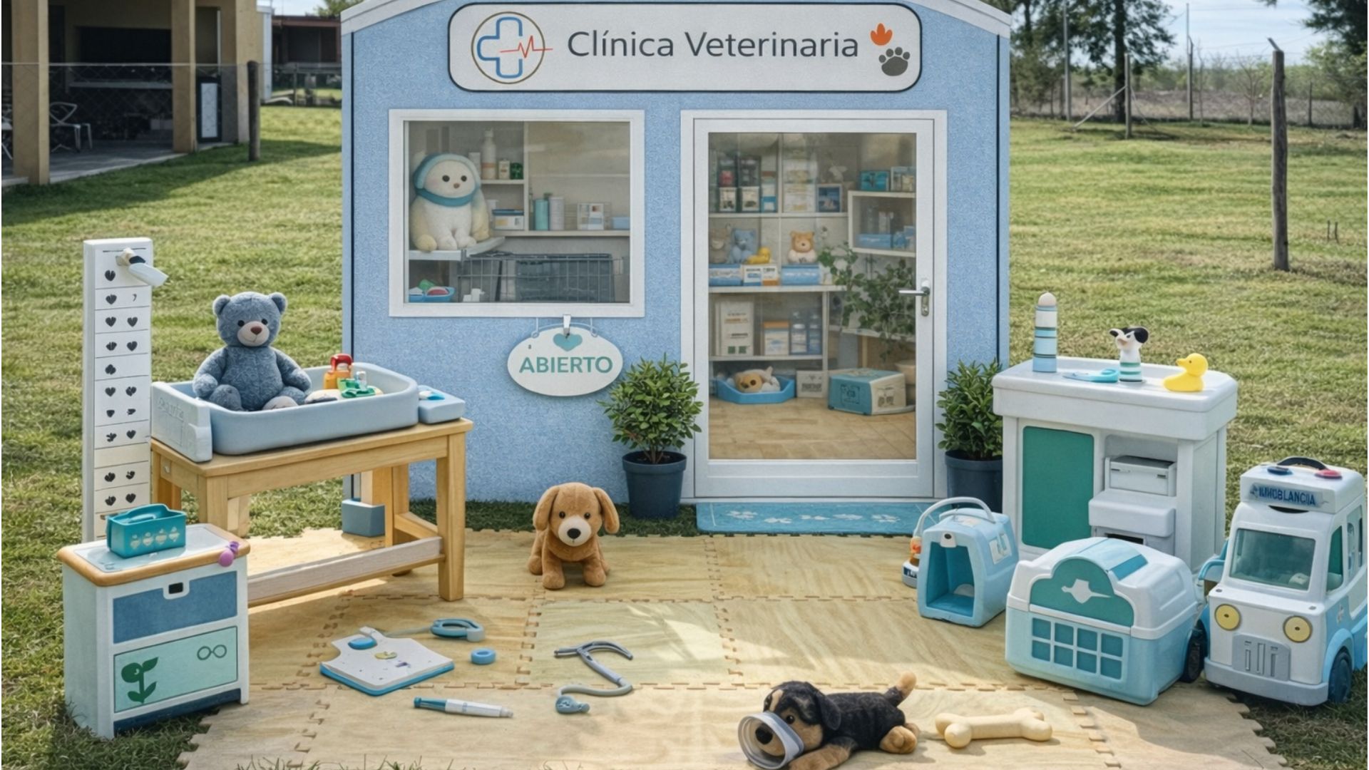 El espacio está lleno de peluches, con una pequeña recepción, una zona de atención y un rinconcito de baño, para mimar, curar y cuidar a cada paciente.